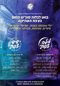 בנוסף, בכל יום שישי החל מהשעה 10:00 תוכלו להנות מקבלת שבת צפתית לרבות מוסיקה, יקבים, מחלבות, סיורים מודרכים ושלל פעילויות בציר הגלריות שיציגו את התוצרים האומנותיים המרשימים.